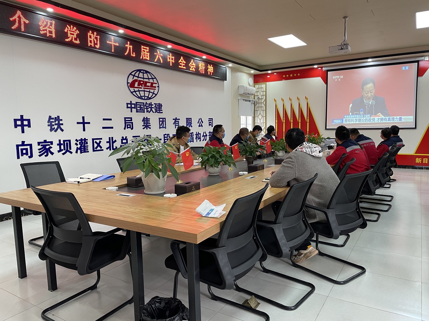 四川水發向家壩貓兒沱工地臨時黨支部組織開展學習黨的十九屆六中全會精神活動