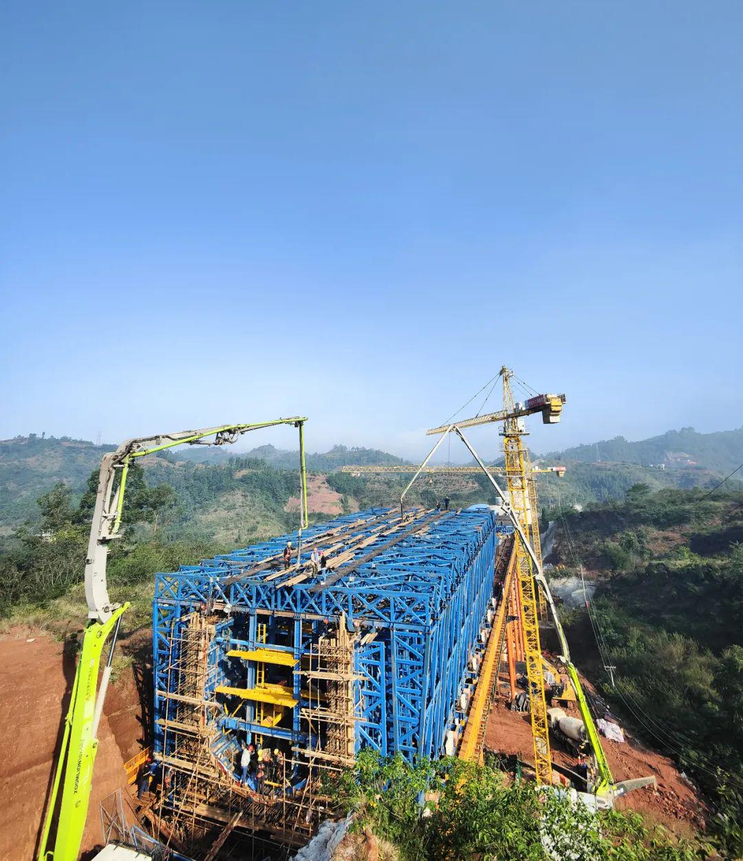 大地灣渡槽穿越溝谷,施工難度大,安全風險極高,是項目的重難點控制工程。為保證此次渡槽槽身安全有序地施工,項目部積極組織召開施工專項研討會,分別從施工工藝、技術指導、機械設備、試驗檢測、應急措施等方面做了細致周密的安排,并在澆筑前對施工作業人員進行了技術、安全、質量交底,確保現場施工安全質量有序可控,從而保證槽身順利澆筑。