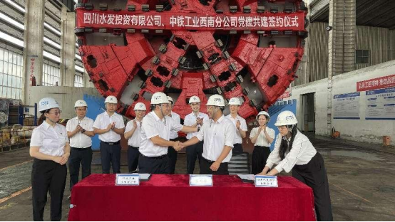 活動當(dāng)天,投資公司黨委副書記、紀(jì)委書記陳雷與中鐵高新工業(yè)西南分公司黨工委書記趙毅分別介紹了企業(yè)發(fā)展概況,雙方人員圍繞國企黨建、主題教育實(shí)踐、主營業(yè)務(wù)合作進(jìn)行了溝通交流,并在組織聯(lián)建、活動聯(lián)辦、業(yè)務(wù)聯(lián)動三個(gè)方面形成了高度共識。全體黨員干部職工在現(xiàn)場觀摩盾構(gòu)機(jī)維修組裝生產(chǎn)線,聽取盾構(gòu)機(jī)基本工作原理介紹后,雙方人員共同參與了《黨建共建協(xié)議》簽約儀式。