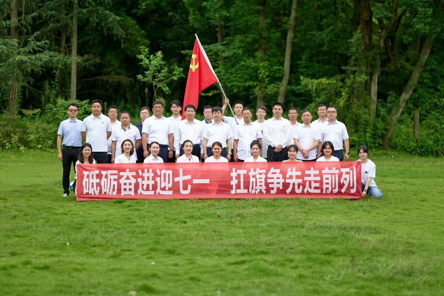 ?主題黨日活動(dòng)中,14名黨員高舉右手,面向黨旗莊嚴(yán)宣誓,以誓言承諾重溫初心使命,凝聚奮進(jìn)力量;齊唱紅歌感黨恩,以“沒有共產(chǎn)黨就沒有新中國”的紅色歌聲振奮人心,彰顯愛黨愛國積極向上的精神,表達(dá)立穩(wěn)潮頭、勇攀高峰的熱忱。?