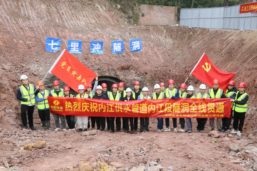 11月23日,隨著七里沖隧洞洞中掘進(jìn)機(jī)破巖而出,標(biāo)志著向家壩灌區(qū)北總干渠一期一步工程內(nèi)江供水管道內(nèi)江段全線7千米,8條隧洞已全部貫通,內(nèi)江供水管道內(nèi)江段全面進(jìn)入二次襯砌。