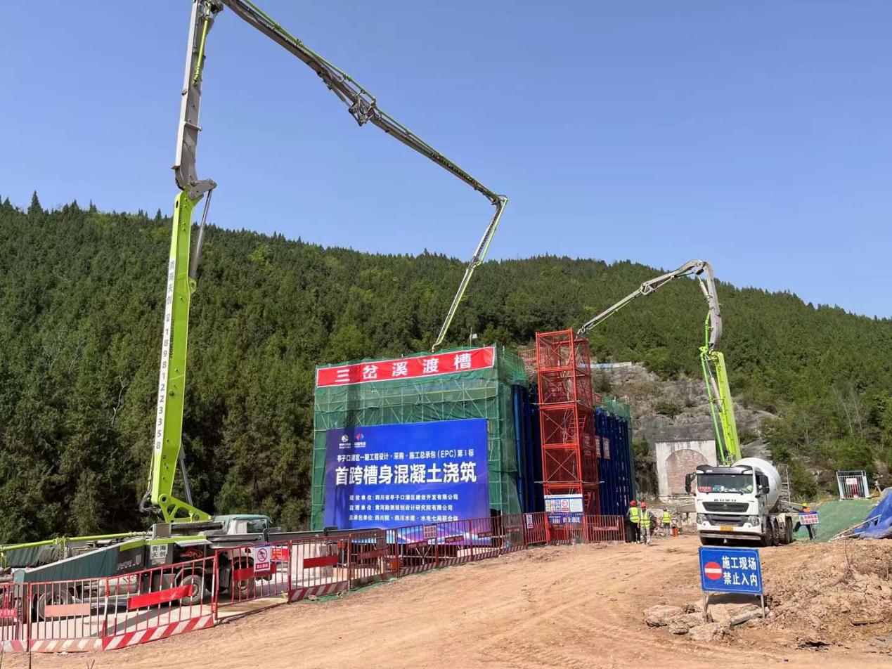 亭子口灌區一期工程EPCⅠ標三岔溪渡槽首跨渡槽混凝土順利澆筑