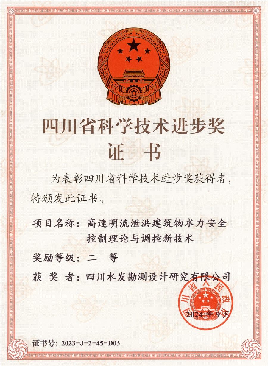 9月10日,四川省科學技術(shù)獎勵大會在成都舉行,會上宣讀了省政府《關(guān)于2023年度四川省科學技術(shù)獎勵的決定》。四川水發(fā)設(shè)計公司參與完成的“高速明流泄洪建筑物水力安全·控制理論與調(diào)控新技術(shù)”榮獲四川省科學技術(shù)進步二等獎。該項目的研究成果應(yīng)用于紫坪鋪水利樞紐、鍋浪蹺水電站等25項水利水電工程,取得了顯著的經(jīng)濟、社會和生態(tài)環(huán)境效益。