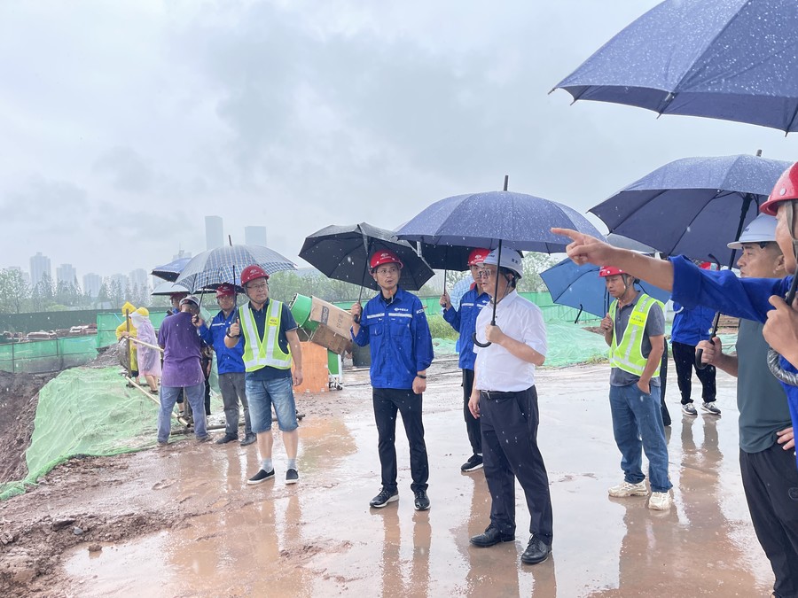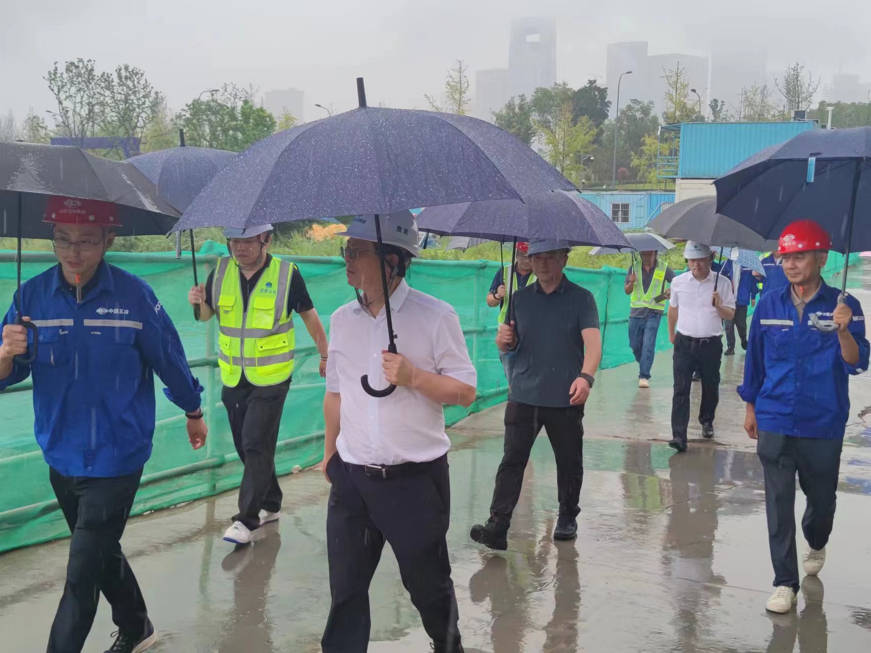 8月24日,集團黨委書記、董事長鐘杰冒雨前往四川水發科創中心項目施工現場就應對極端天氣、摸清防汛薄弱環節等防汛備汛工作開展檢查指導。集團黨委委員、工會主席唐克飛,投資公司黨委副書記、總經理郎波陪同檢查。