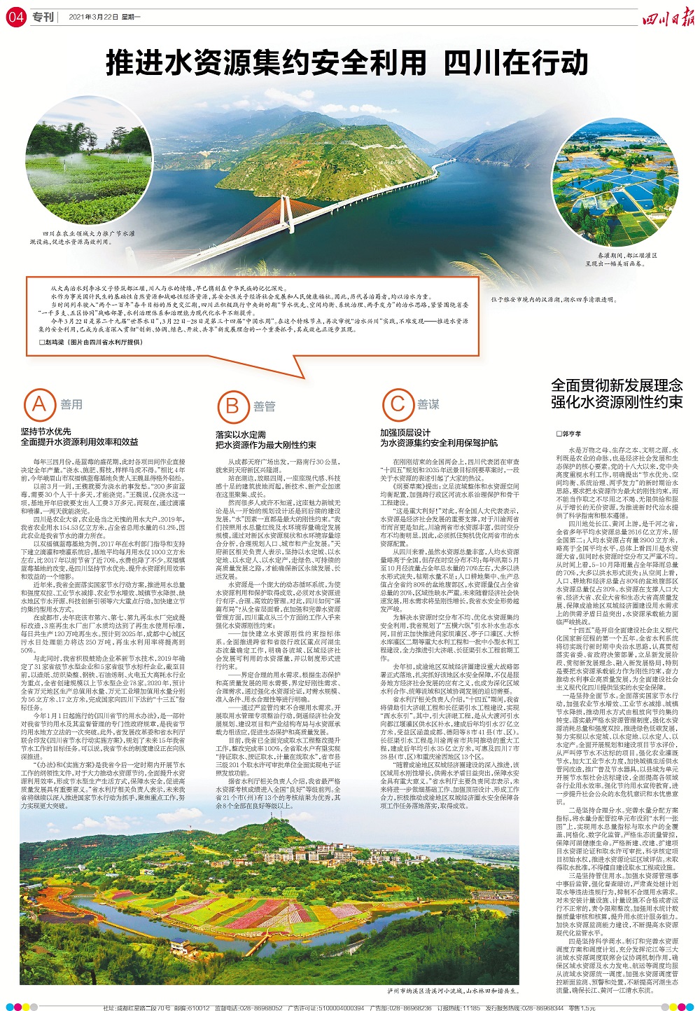 “十四五”是開啟全面建設(shè)社會(huì)主義現(xiàn)代化國(guó)家新征程的第一個(gè)五年。全省水利系統(tǒng)將全面貫徹習(xí)近平新時(shí)代中國(guó)特色社會(huì)主義思想,切實(shí)踐行新時(shí)期中央治水思路,認(rèn)真貫徹落實(shí)省委省政府決策部署,立足新發(fā)展階段、貫徹新發(fā)展理念、融入新發(fā)展格局,特別是要把水資源承載能力作為剛性約束,奮力推動(dòng)水利事業(yè)高質(zhì)量發(fā)展,為全面建設(shè)社會(huì)主義現(xiàn)代化四川提供堅(jiān)實(shí)的水安全保障。