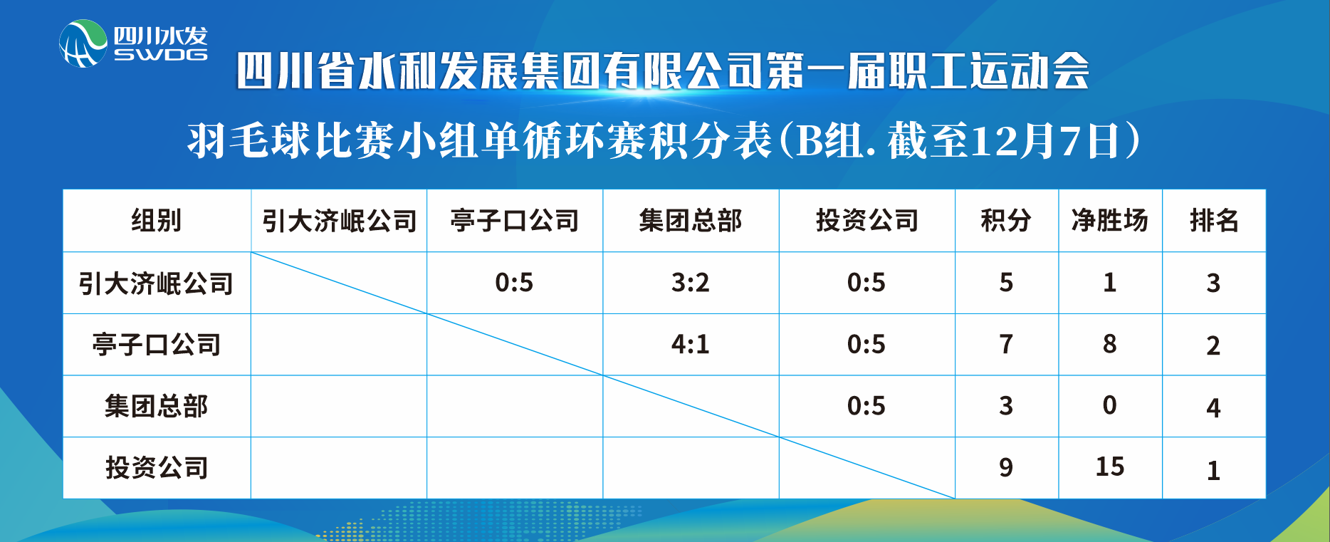 集團(tuán)第一屆職工運(yùn)動(dòng)會(huì)第3天,羽毛球小組循環(huán)賽及排位賽開賽,8支隊(duì)伍在短短的一天時(shí)間里進(jìn)行了15場(chǎng)比賽,向家壩公司獲得本屆運(yùn)動(dòng)會(huì)羽毛球混合賽團(tuán)體第三名、亭子口公司獲得第四名,12月9日將進(jìn)行冠亞軍爭(zhēng)奪。比賽現(xiàn)場(chǎng)精彩紛呈、高潮迭起,選手們比戰(zhàn)術(shù)、拼耐心,跳躍、反手、扣殺,行云流水的動(dòng)作,充分展示了集團(tuán)職工頑強(qiáng)拼搏、勇于拼搏、激情四射的精神面貌。