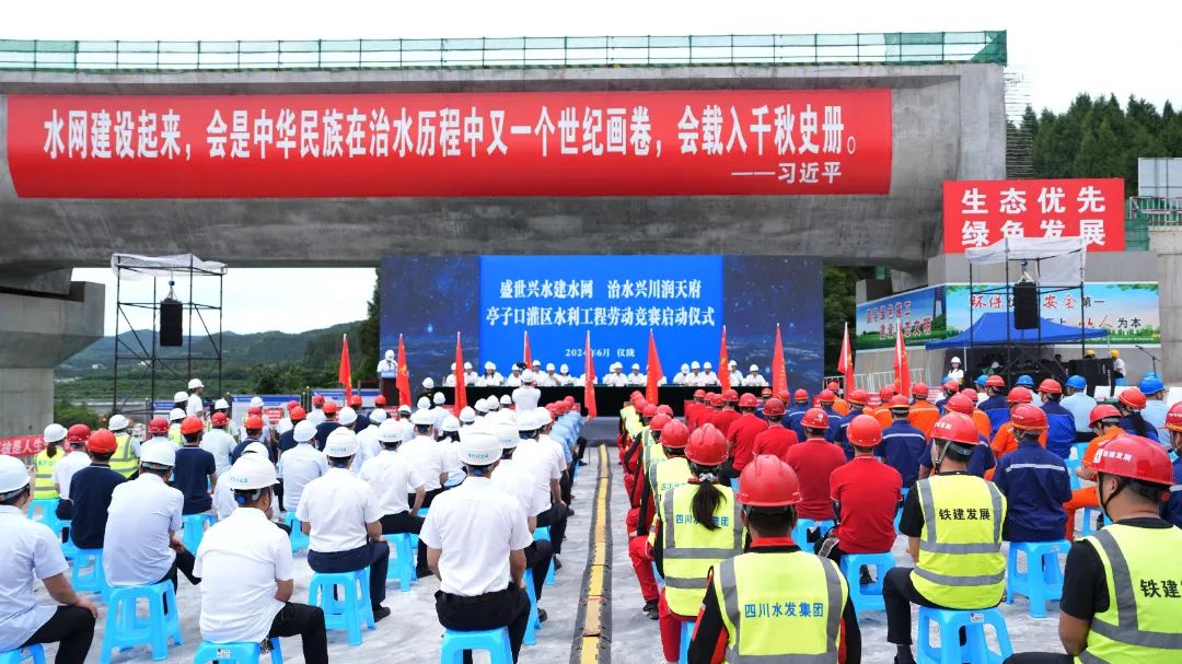 6月21日,省首屆“盛世興水建水網(wǎng)·治水興川潤(rùn)天府”省級(jí)勞動(dòng)競(jìng)賽——亭子口灌區(qū)水利工程勞動(dòng)競(jìng)賽在亭子口灌區(qū)一期工程EPC第II標(biāo)老吳壩渡槽施工現(xiàn)場(chǎng)正式啟動(dòng)。省總工會(huì)黨組成員、副主席彭闖出席講話并宣布勞動(dòng)競(jìng)賽啟動(dòng),省水利廳黨組成員、副廳長(zhǎng)劉輝在啟動(dòng)儀式上致辭,省水發(fā)集團(tuán)黨委書記、董事長(zhǎng)王華做賽前動(dòng)員,省水發(fā)集團(tuán)黨委副書記、副董事長(zhǎng)、總經(jīng)理向仕春主持啟動(dòng)儀式。
