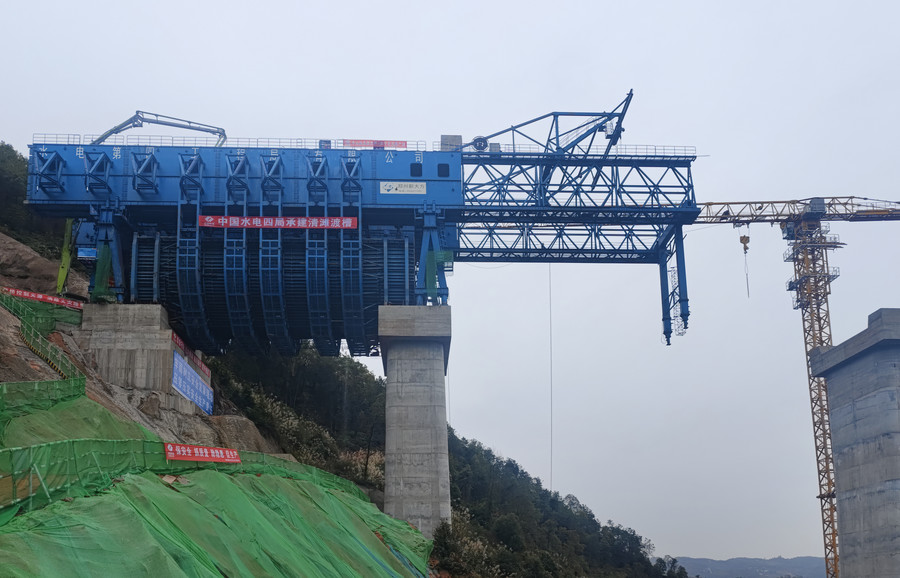 12月17日,清灘渡槽首跨澆筑成功。清灘渡槽坐落于宜賓市翠屏區金坪鎮,位于向家壩灌區北總干渠一期一步工程的關鍵線路上。清灘渡槽工程全長290米,進口段長40米、槽身段長230米、出口段長20米。渡槽上部結構為預應力混凝土U型簡支梁,槽內設計水深為5.83米,設計流量84m3/s。清灘渡槽前緊接一步灘隧洞,后緊隨大巖上隧洞,橫跨黃沙河、內六鐵路和天然氣管道,增加了施工難度及風險。?