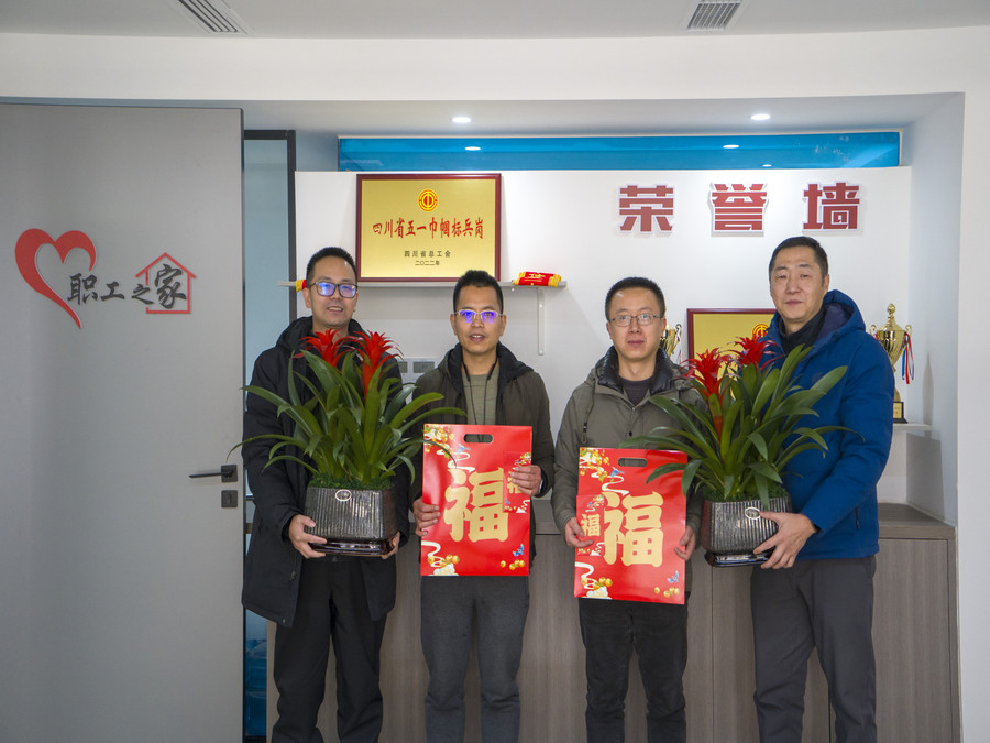 ? ? ? 1月18日,成都市青羊區(qū)草堂街道總工會(huì)副主席葉兵慰問公司“青羊工匠”唐全民、陳昌盛。