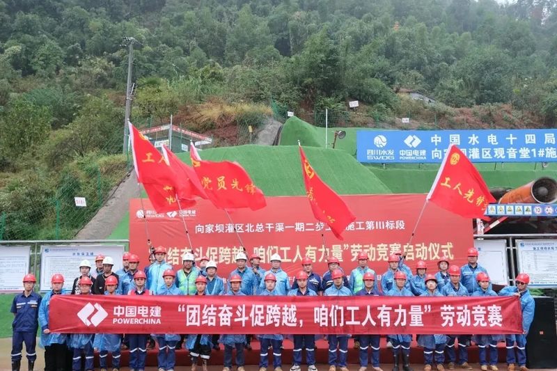 9 月 30 日下午,在國慶佳節來臨之際,向家壩灌區北總干渠一期二步工程施工第Ⅲ標段現場彩旗飄揚,人頭攢動,一場以 “團結奮斗促跨越,咱們工人有力量” 為主題的勞動競賽啟動儀式圓滿舉行。本次勞動競賽旨在加快推進工程建設,完成 2024 年度預定目標,激發各崗位勞動熱情,全面提升工程質量和安全管理水平。向家壩公司黨委書記、董事長代勇,黨委專職副書記、工會主席饒雪峰出席儀式,向家壩灌區北總干渠一期二步工程施工第Ⅲ標段設計、監理、項目部及所屬各分包單位70人參加。