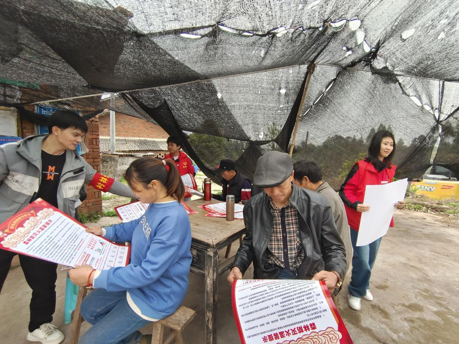 ? ? ? ?3月22日上午,一分公司共青團員在燈坡村村支書和相關工作人員的帶領下前往榮縣鏵山學校舊址,大家通過張貼海報、分發《森林防滅火溫馨提示》、現場答疑等方式,向村民群眾宣傳和學習森林防滅火知識,提高了群眾“森林防火人人有責”的意識,切實踐行了學習雷鋒服務群眾零距離。