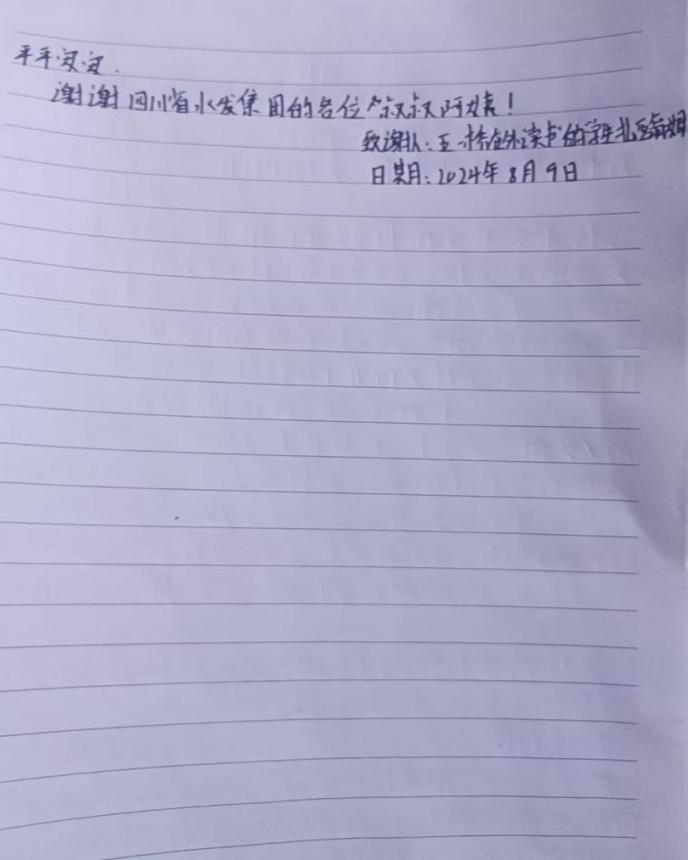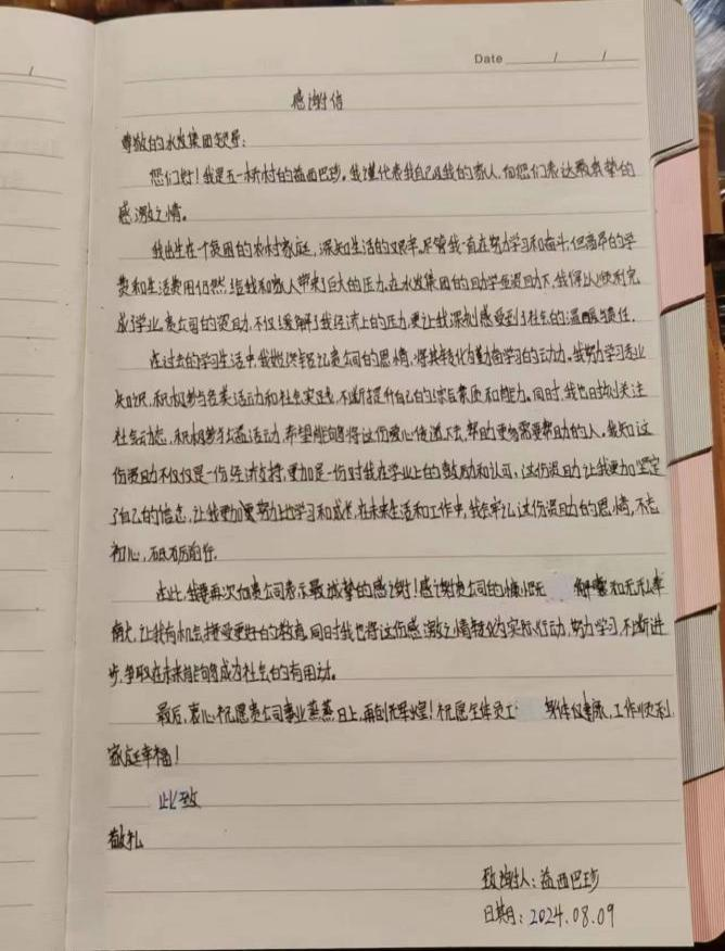 按照省委托底性幫扶戰略部署,在水利廳的領導下,集團認真履行省屬國企社會責任,立足企業實際,將集團優勢與德格縣資源稟賦充分結合,加快推進德格縣托底性幫扶、振興發展工作取得實效。為更好地助力集團對德格縣的托底幫扶工作,集團團委于2022年以來按年度實施開展了“滴灌育苗”助學幫扶活動,截至目前,累計向德格縣更慶鎮五一橋村捐贈助學幫扶金3.48萬元,幫助青少年學生48人次順利入學,受助學生也對集團“滴灌育苗”助學幫扶計劃心存感激,紛紛發來感謝信。