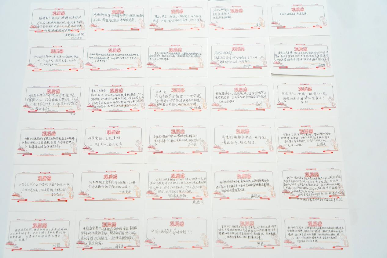 影片結束后,青年職工們的內心久久不能平靜,影片中那些戰士們的鏗鏘話語仍然在每一個職工心間激蕩,大家通過觀后感卡片紛紛表達了感受,對那些為國家和民族獻出生命的英雄們表達了自己崇高的敬意。